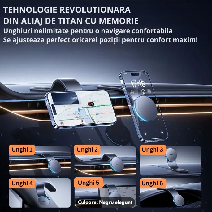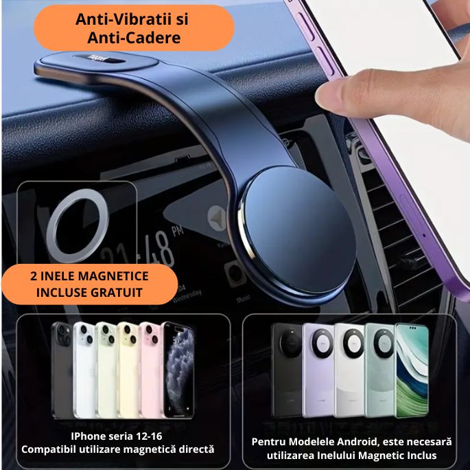 ✓ Utilizare în Mașină: Magneții puternici mențin telefonul perfect stabil, chiar și pe cele mai denivelate drumuri.